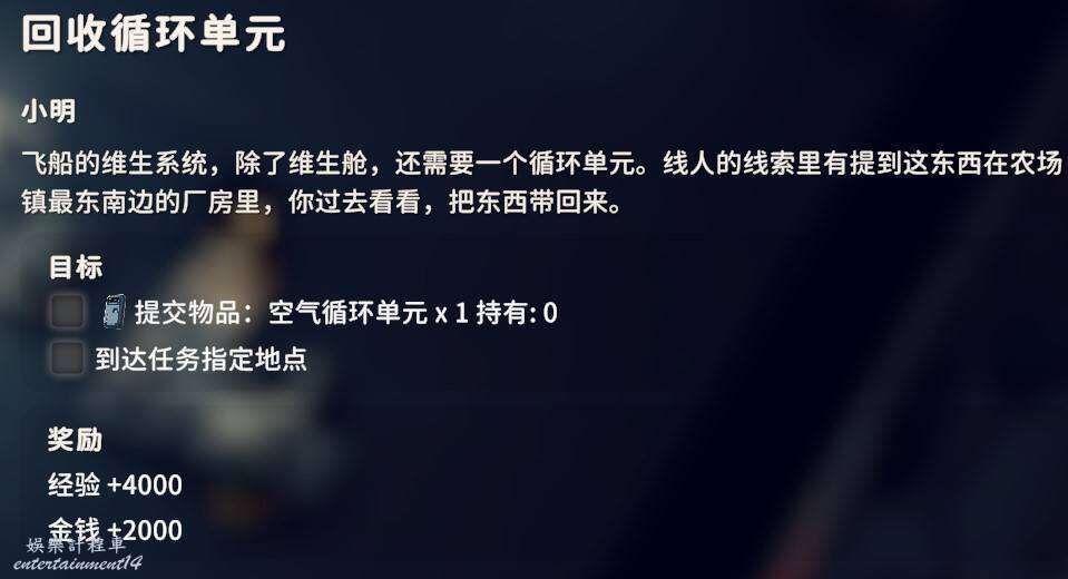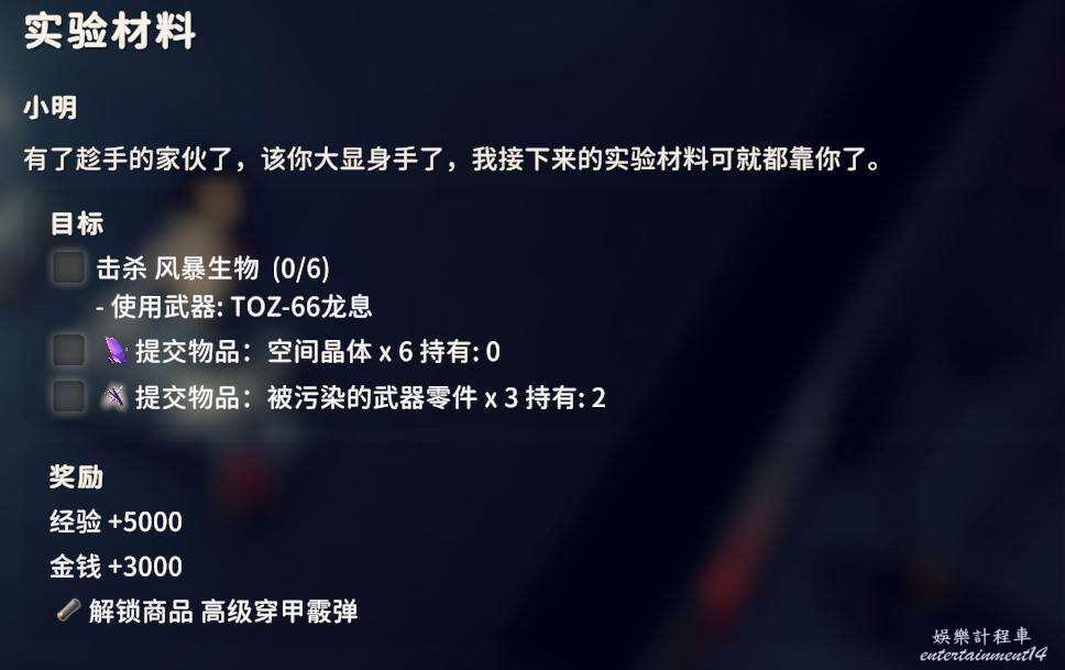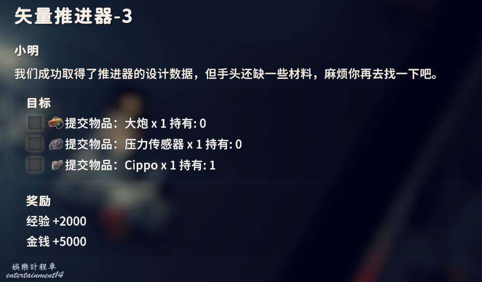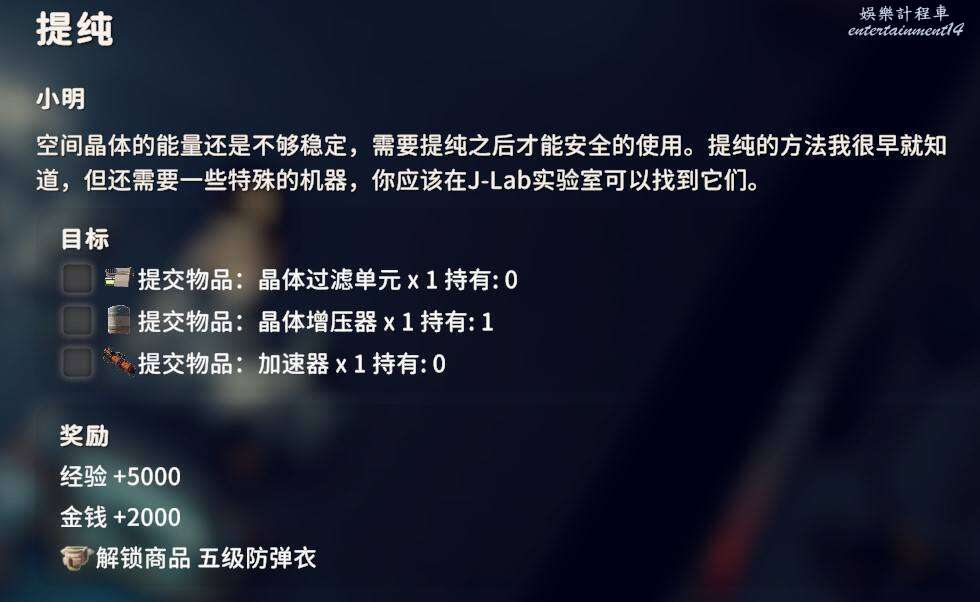 交付晶體過濾單元X1、晶體增壓器X1、加速器X1,這幾個物品都是實驗室的物品,通過搜刮獲得。