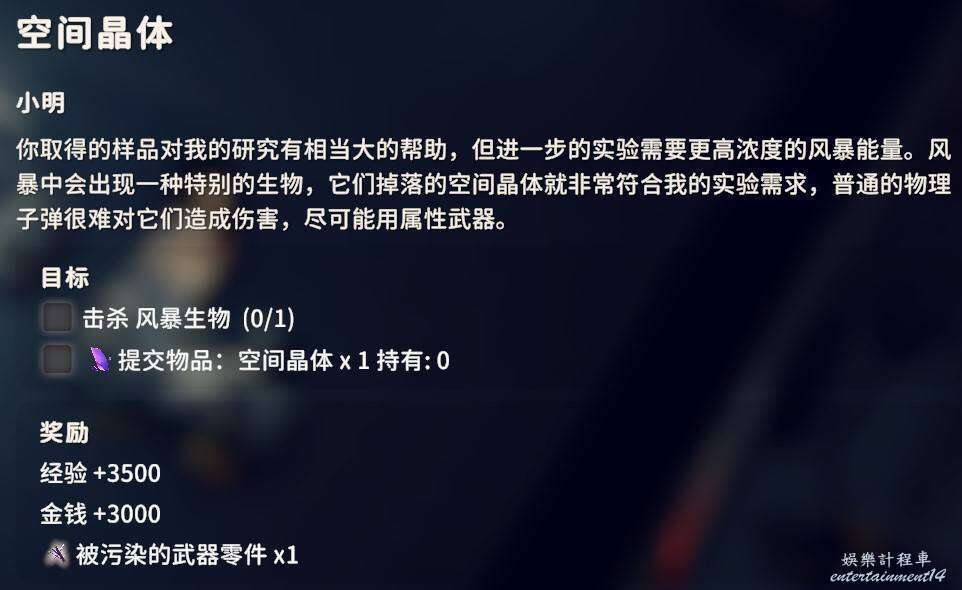 在風暴期間擊殺紫色敵人並拿走空間晶體X1即可完成任務。