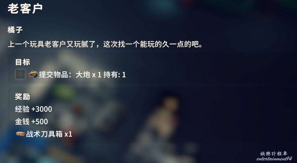 給小明交付格力克X3即可完成任務,商店直售或者製作都可以,這個武器成本很低,前期地圖也會掉落。