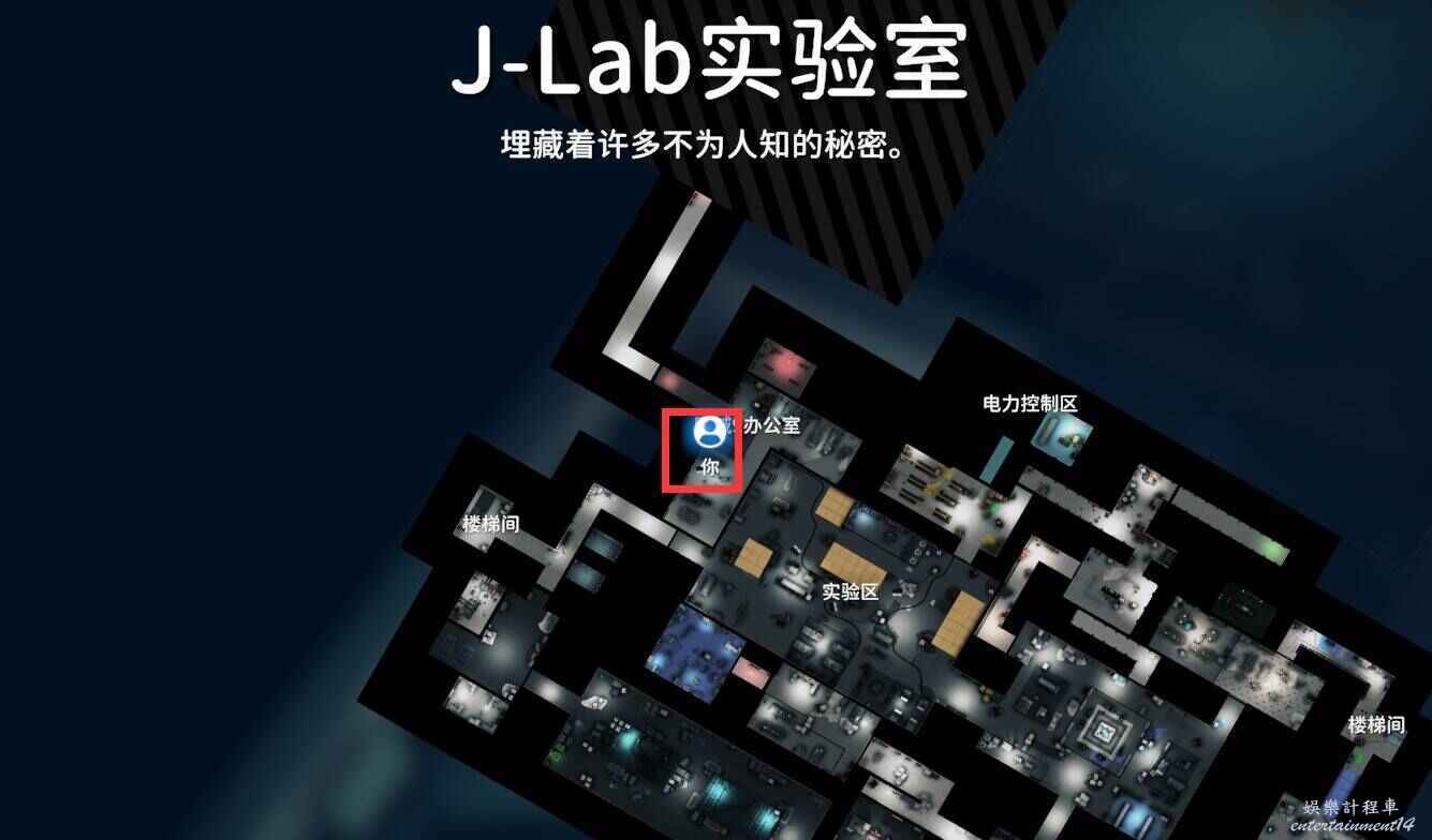 地下二層實驗室一開始並沒有燈光,搜索起來非常難受,我們首先來到下圖電力控制區的位置,打開電源開關,之後地下二層就會有燈了。