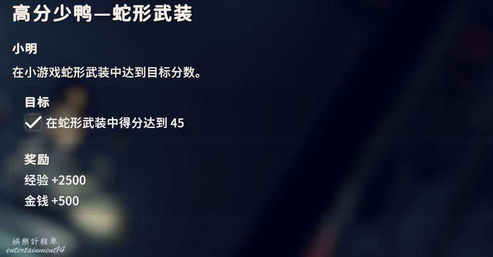 蛇形武裝卡帶在小明這裡可以購買,因為這個遊戲對色彩沒什麼要求,黑白顯示器就能夠進行遊玩,吃夠45分即可完成任務。