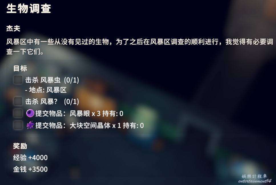按照要求擊敗怪物上交風暴眼X3,大塊空間晶體X1。