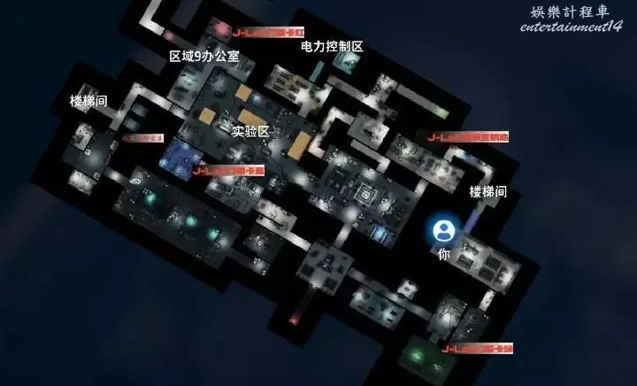 地下一層一共有4把鑰匙分別是,J-Lab放映室鑰匙、J-Lab門禁卡紅、綠、藍,下面就用顏色簡稱了。
