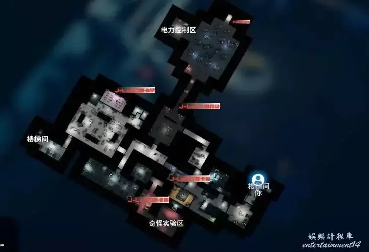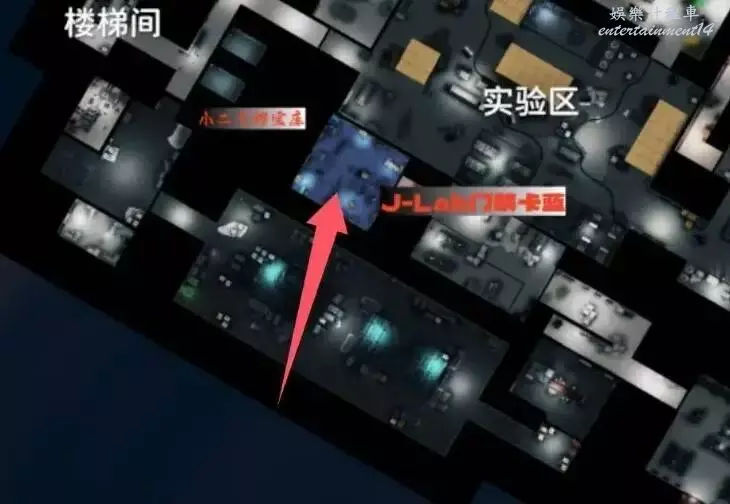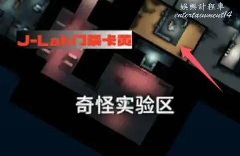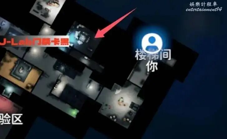 很好找我們進實驗室的入口,對直往前走就能找到,因為是放映室用的投影,切大地圖看到是黑的。這個地方有遊戲卡帶,有J-Lab箱是個不錯的物資點。