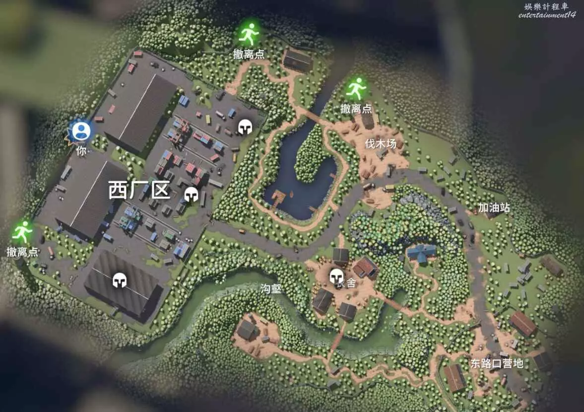 勞登的刷新位置南邊小屋、伐木場、農舍、加油站、東路口營地、西廠區都可能成為他的藏身之地。