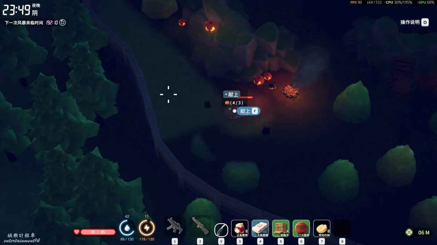 新裝備要6個南瓜燈(販賣機買南瓜和燈泡自己搓),夜晚去農場鎮這個地方(圖中藍點):
