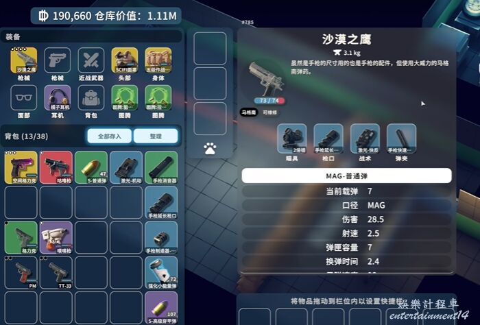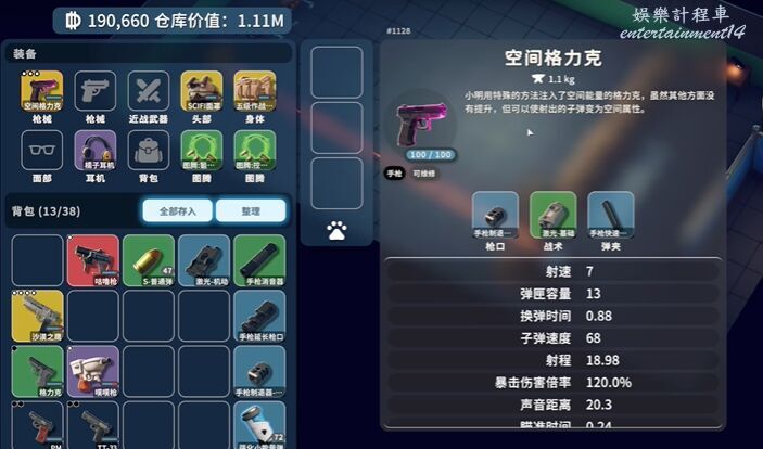 評價:這把新槍屬性完爆前兩把,前期就能拿到最佳手槍,還能裝配消音器。