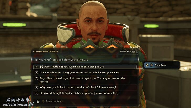 一旦拿到斯普拉特,原路返回找托雷斯指揮官。把玩具交給他,他就會獎勵你一系列物品