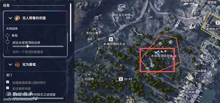 ARC Raiders 無人照看的農場任務完成方法 4 11 月 2025-11-04 廣告 來源:互聯網 本任務分為兩個步驟:首先前往水培穹頂下載資料,然後將其傳送到前線倉庫。 任務流程: 前往水培穹頂綜合體。 進入穹頂內部,在其中找到一台電腦。與電腦互動,下載研究資料。 下載完成後,出門,跟著箭頭方向走能立即前往最近的前線倉庫。 進入倉庫內部,找到另一台小型電腦。與之互動,上傳之前下載的研究資料。 完成任務:成功上傳資料後,任務即告完成。隨後你只需前往最近的撤離點,安全撤離即可。