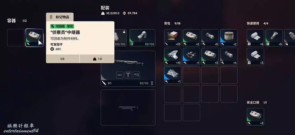 ARC Raiders 怎麼快速賺錢 4 11 月 2025-11-04 廣告 來源:互聯網 就目前是市場價格來看,想要快速簡單賺錢,遊戲中有物品將“偵查員”中繼器。 這個武器獲取方法簡單,性價比較高,價格也不低。 如何獲取呢?具體方式就是去廢城的玫瑰廣場。 這裡會穩定刷出投彈手,投彈手有兩個給他制導的偵查員,我們要打的就是這兩個偵查員。 需要注意打掉之後記住大概位置,不然在後續的搜索階段會浪費時間去尋找物資掉落處。