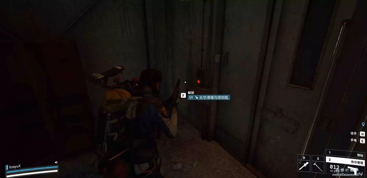 確認安全後,到左側刷太空港壕溝塔鑰匙打開被鎖的門。目前版本可能是BUG的緣故,在內側開鑰匙門是不會消耗鑰匙卡次數的。打開門後就可以開始爽吃了。