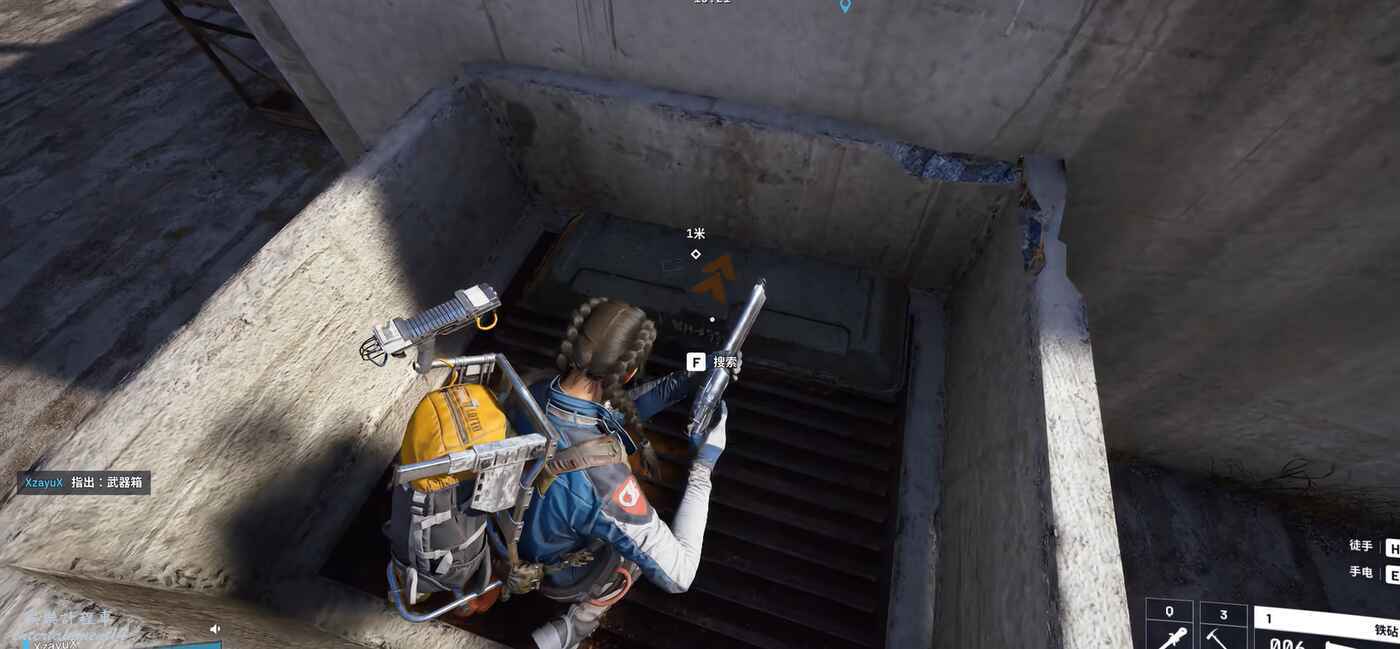 面前有個小的凹槽,裡面可能會刷新武器箱,別忘記吃。