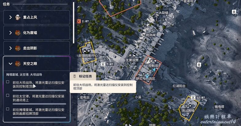 任務目標:在水壩戰場、太空港和掩埋之城這三個地圖的最高點安裝LiDAR掃描器。