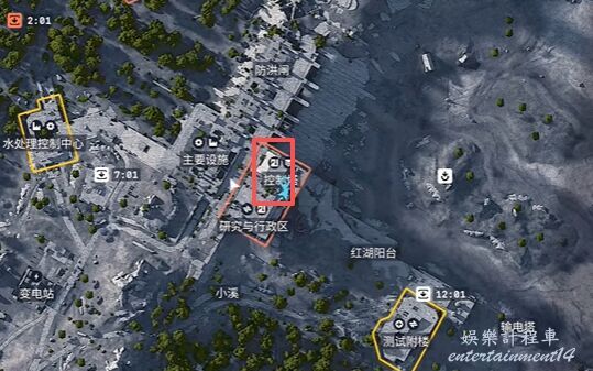 位於地圖偏中央南部的控制塔樓頂。