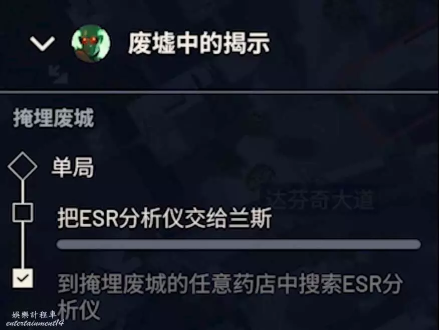 ARC Raiders 廢墟中的揭示任務完成方法 5 11 月 2025-11-05 廣告 來源:互聯網 任務的要求是讓我們在任意藥店尋找ER分析儀,地圖為掩埋廢城。在地圖中標點的位置是其中一家藥店。 進入地圖到達指定位置後發現前面就是地鐵站入口,旁邊就是藥店。 到達藥店門口後發現門被堵住了,只需要互動把門撬開即可進入。 打開大門進入,記得打開手電筒。分析儀長得非常像電腦,並且會刷新在桌子上,仔細找找就可以發現,千萬別忘記拿走分析儀哦。