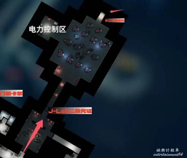 地下二層同樣有四把鑰匙:J-Lab二級憑證、黃、紫、黑門禁卡。