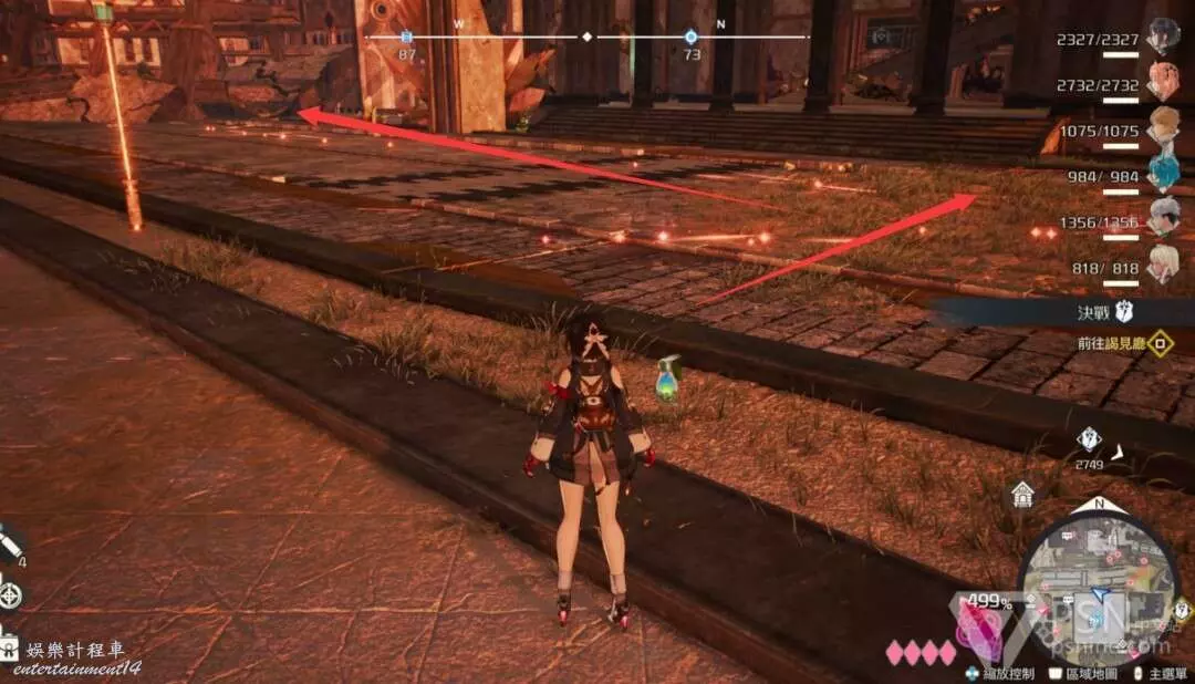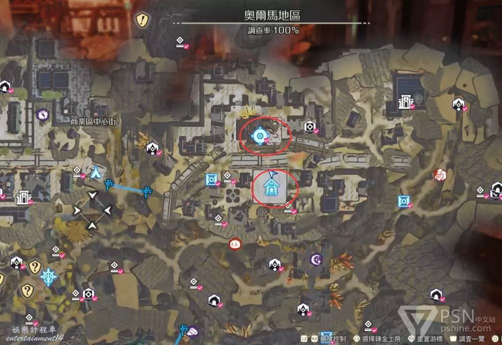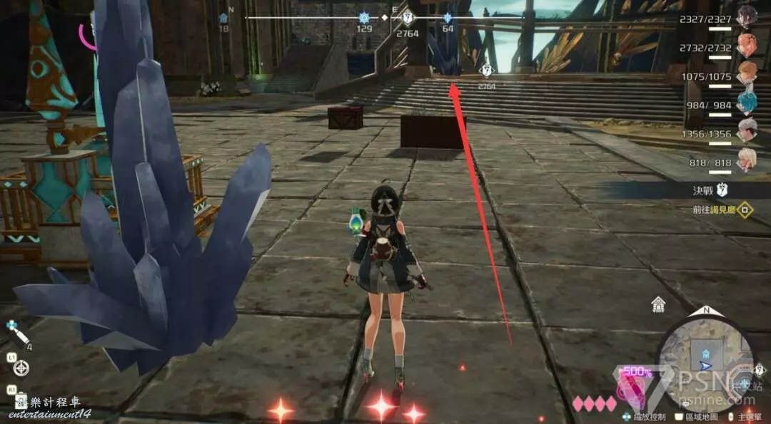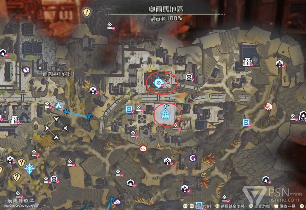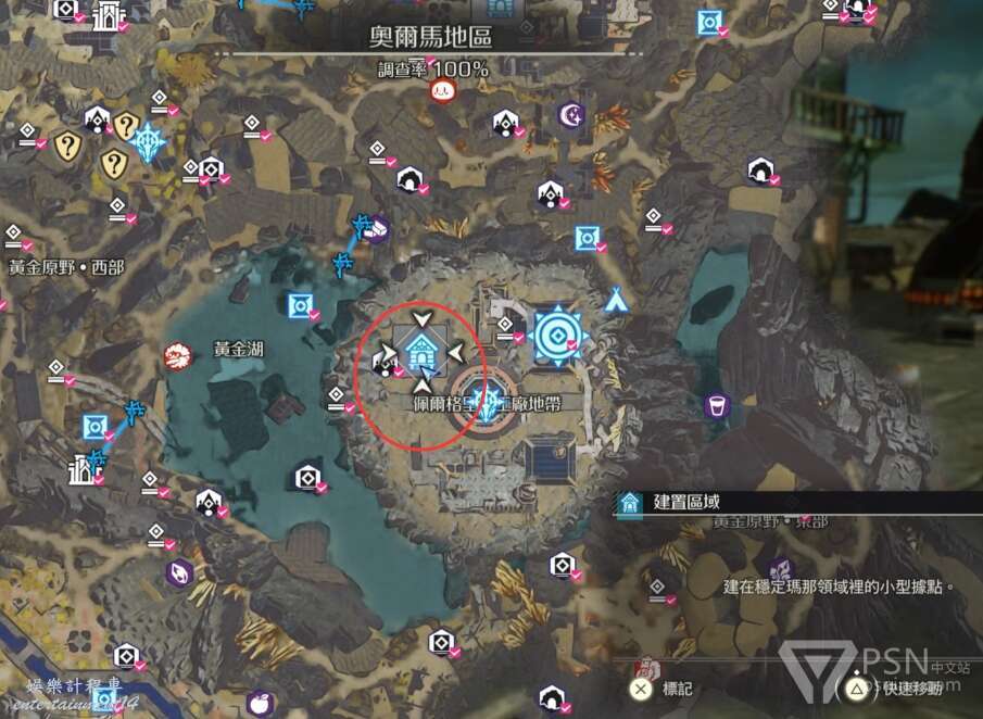 如果有DLC的話,可以在圖3奧爾馬地區如圖所示的建置區域造瑪娜間歇晶,注意旁邊還得造個能量機,因為瑪娜間歇晶需要消耗能量機的能量。這個地方使用瑪娜間歇晶DLC可以在箭頭位置刷出間歇晶,走兩步就到了,非常的近。不過間歇晶刷特性還不錯,刷餘音斷片的效率感覺遠不如間歇泉,數量給的比間歇泉要少,很多時候還只會刷出來小和中餘音斷片,刷不出來大,也不知道是不是刷的姿勢不對