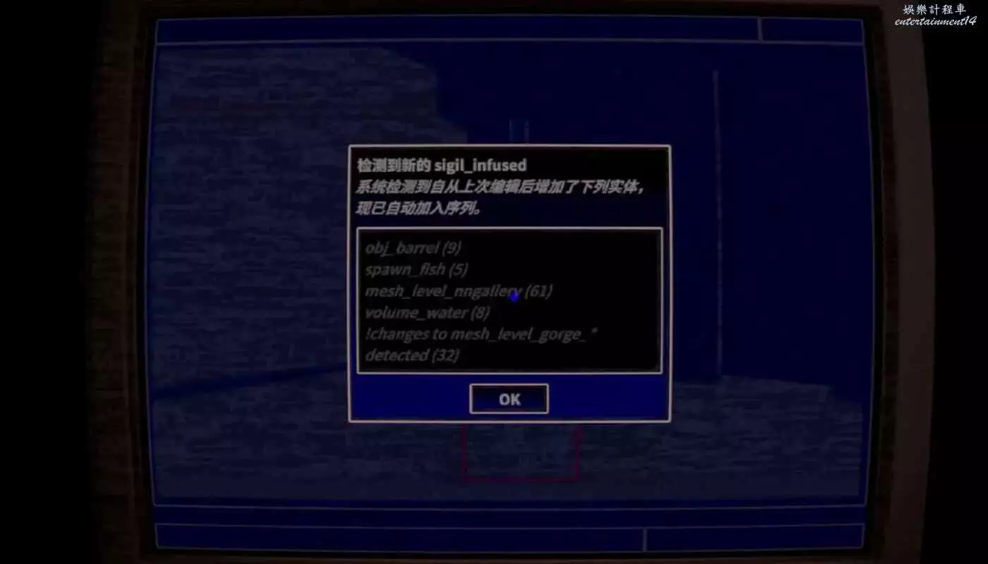 然後我們完成這一系列藍色方框的解謎互動,我們靠近後找角度將兩個藍框對準變成一個後進入劇情。