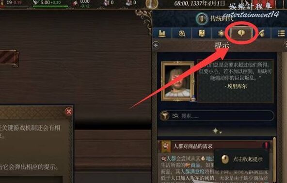 螢幕右上角,時間下面這個按鈕可以查看提示,對遊戲機制提供了更詳細的解釋和一些建議。
