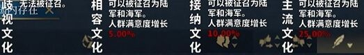 但是每個國家只能有一個主流文化,其他文化最多是接納文化,就是銀等級。