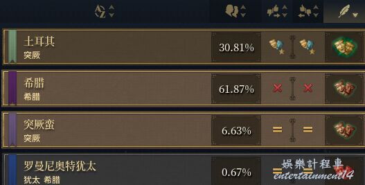 由於每一個國家的文化等級是有限的就是下圖這個東西,如果我們超出了這個上限就會受到文化懲罰。所以我們儘量要讓熱門文化變成我們的相容文化且不超過相容上限。