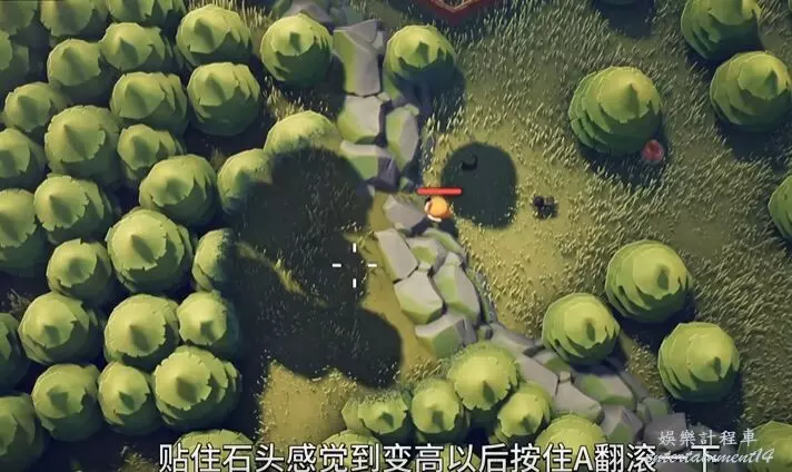 在這塊石頭這裡,往上翻滾就能出來了。