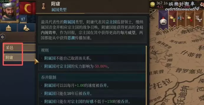 通過外交介面創建”自訂屬國”,將新佔領省份分配給附庸