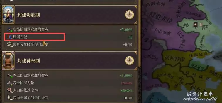 通過外交改善關係提升基礎好感度,選擇”封建貴族制”等改革提供忠誠加成。