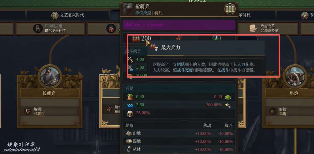 常備步兵:200人/隊,維護費高昂 徵召騎兵:500人/隊,自帶50%減傷和25%士氣減傷