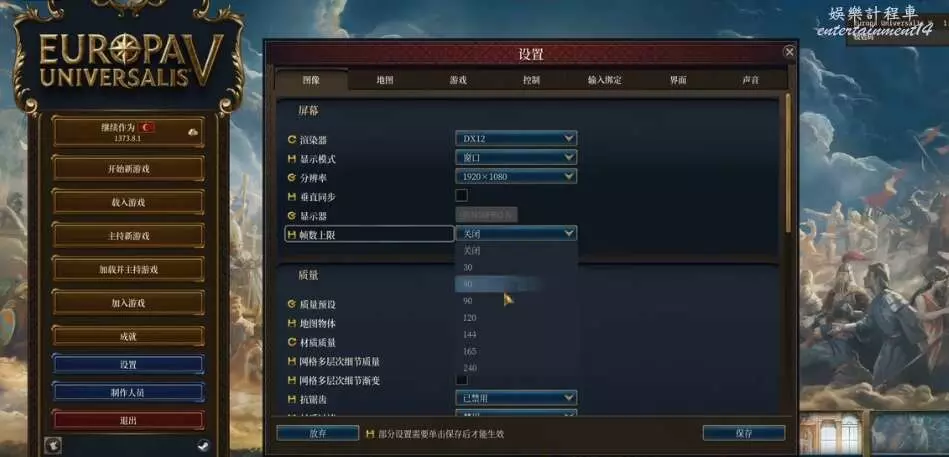 視窗模式、垂直同步、幀率限制、其他畫質選項。