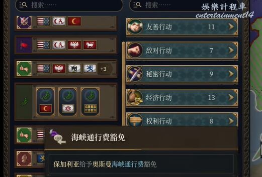 條約生效後立即進入經濟行動介面,選擇”撤銷海峽通行費”取消剛剛讓步的條款。