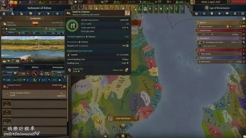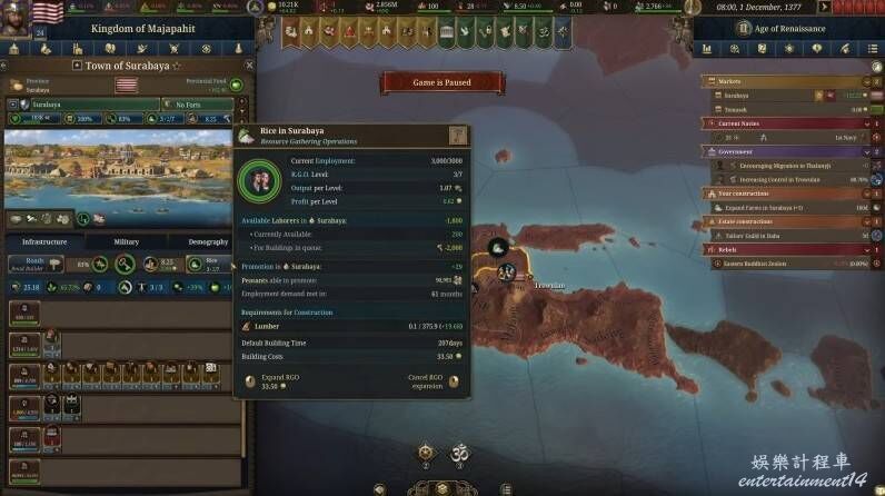 勞動力需求:RGO的每一層都需要1000名勞動力才能完全高效地運作。還不夠嗎?你的農民人口會慢慢升級來填補工作崗位,只要你在那個地方至少有500名農民來實現這種“社會流動性”。