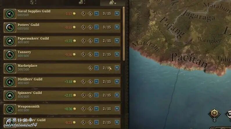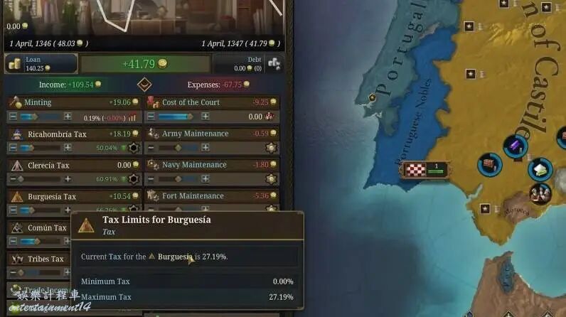 微妙的平衡:對人徵稅太重會讓他們生氣。憤怒的莊園會導致叛亂,剝奪你強大的獎金,比如神職人員的研究速度提升或漢堡的貿易愛好者。