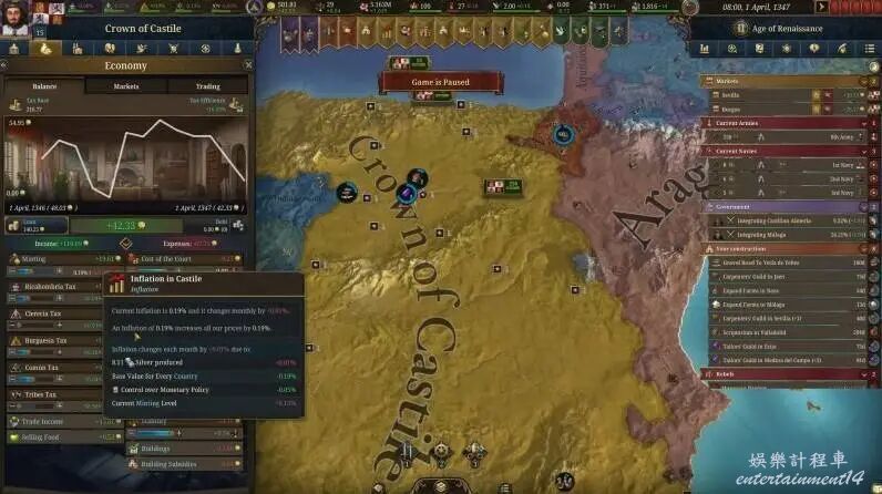 通貨膨脹的危險:通貨膨脹讓一切變得更加昂貴:建造東西、維持軍隊、雇傭顧問。如果不加以控制,它會削弱你的經濟。你可以通過某些政府改革和技術提高鑄造門檻。