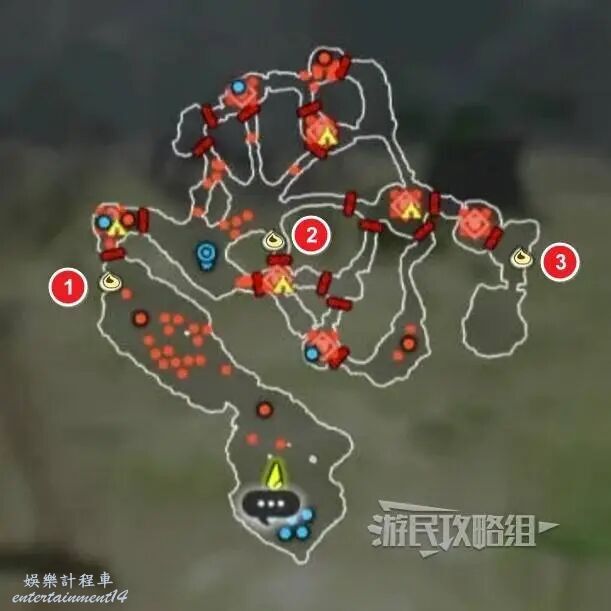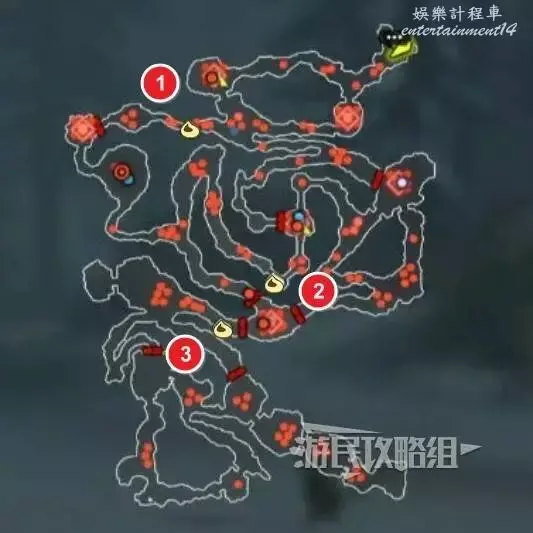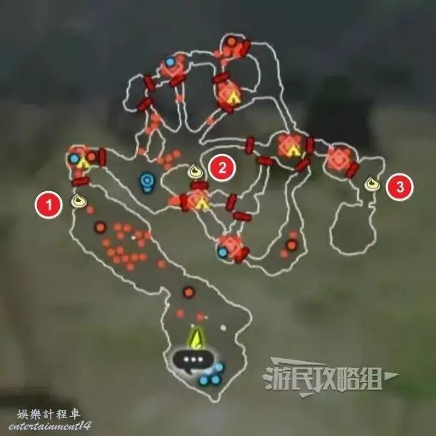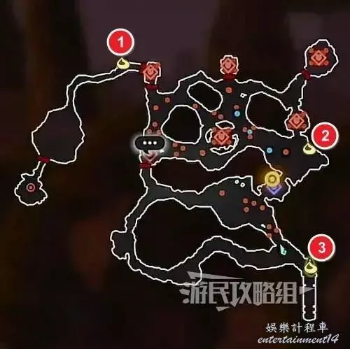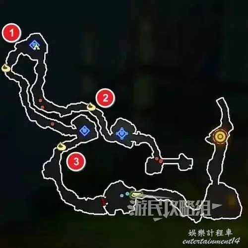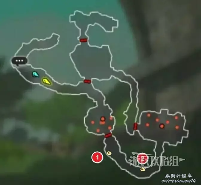 ①開始後稍微往前走,在穿過島嶼下方之前可以看到。