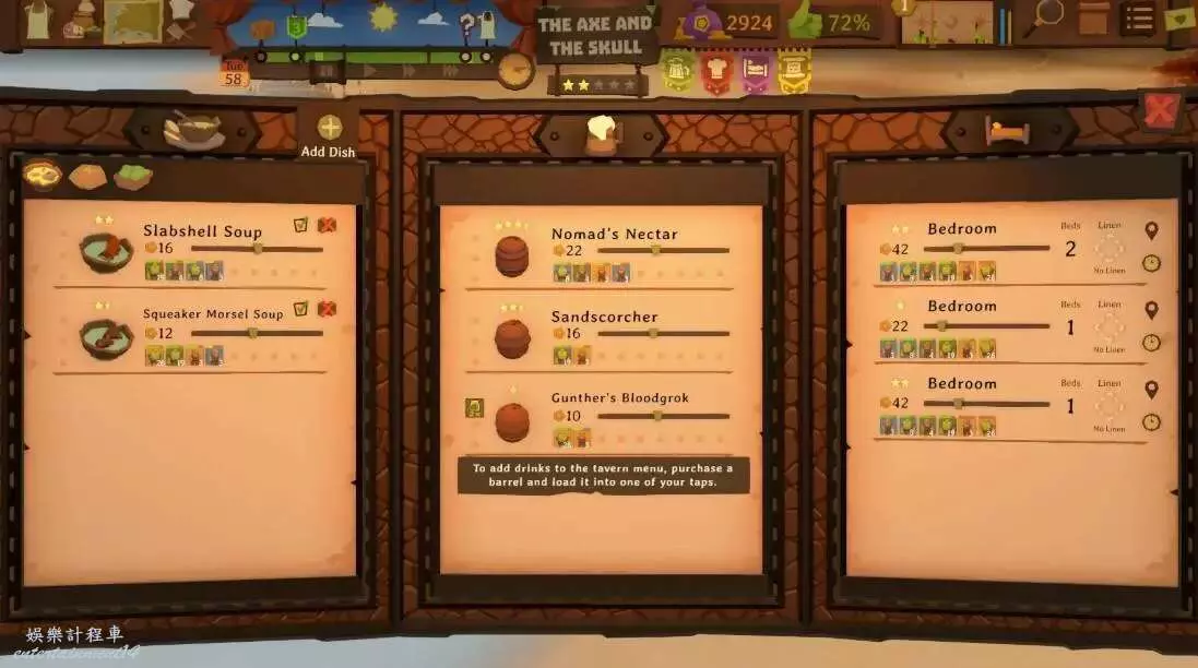 飲料比食物更容易管理。您不需要專門的員工來準備任何東西;只需從地圖上的市場訂購飲料,將它們裝入水龍頭,然後開始銷售。