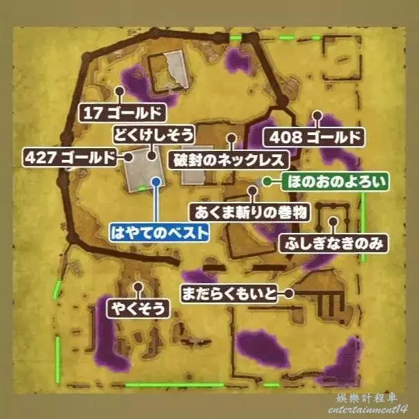 1樓,2400金幣、生命之石、銀制胸鎧、豪傑手環、必中券卷軸