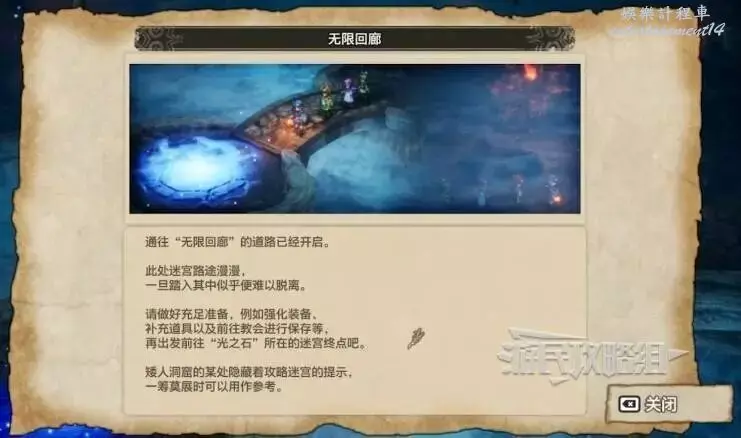 無限回廊在通關主線並集齊7份世界回憶後,即可從矮人洞窟地下4層進入,推薦探索和挑戰等級為Lv60。無限回廊總共有26個區域,可探索範圍非常大,建議務必做好充分準備之後再前往挑戰(包括但不限於提升等級、準備恢復道具等)。