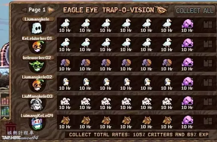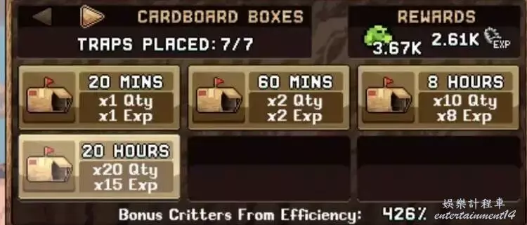 每種陷阱都有不同時間的檔位,如果能夠頻繁收取陷阱的話,時間越短收益越高