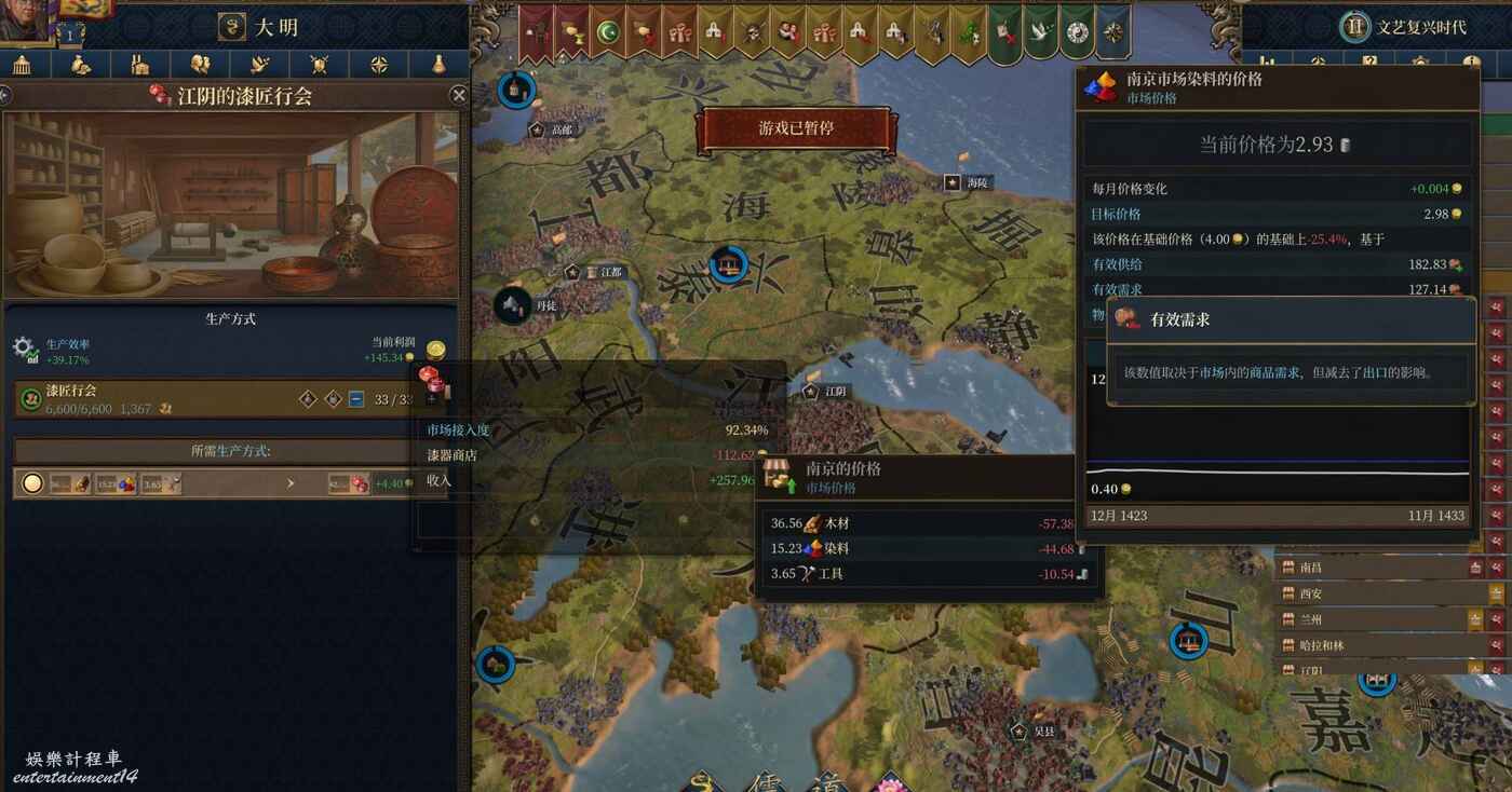 回到貿易上來。應該再次強調,eu5的商品供需機制和v3差別很大。在v3裡,原材料被外國市場運走太多,會導致本地市場原材料價格飛漲。但是在eu5不是這樣。