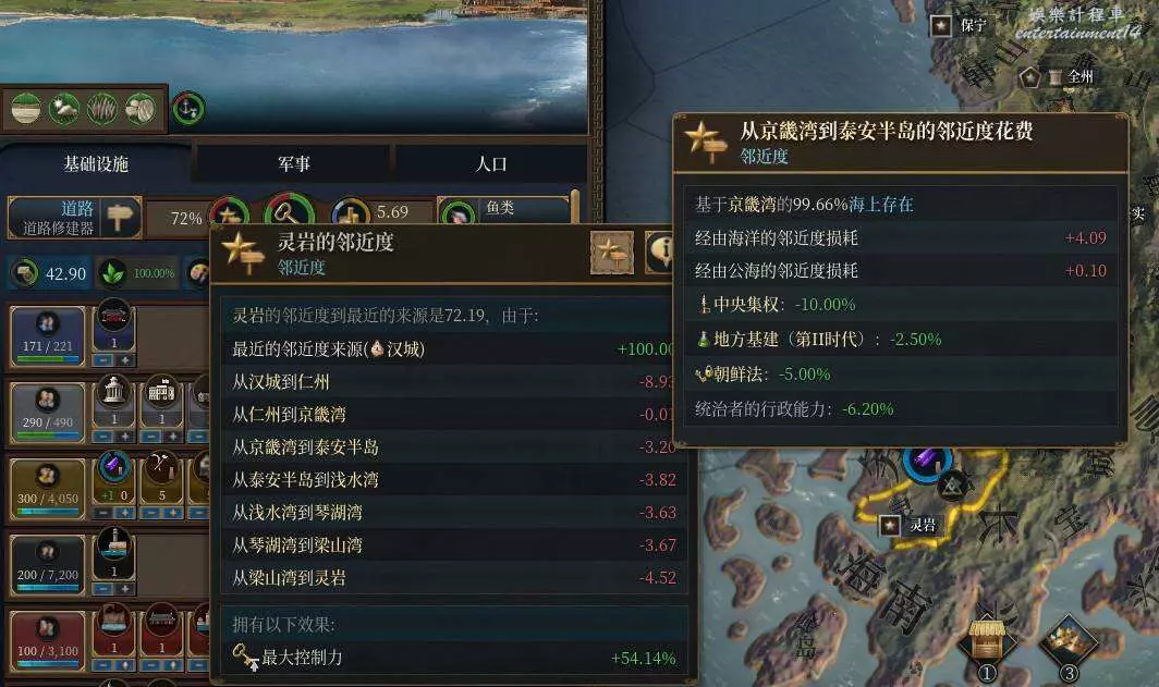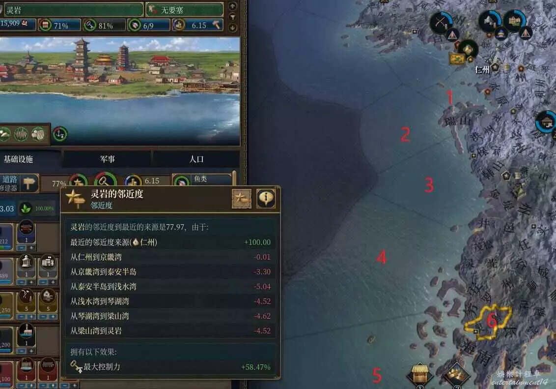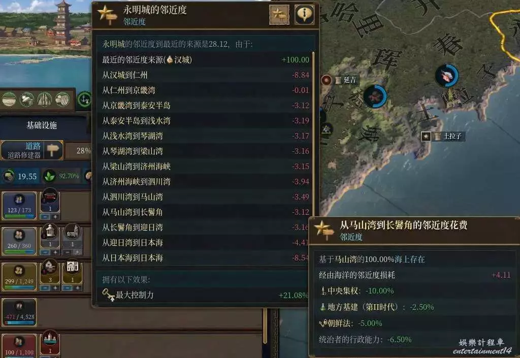 眾所周知鄰近度是遊戲前期非常令人頭疼的存在,即使鋪了路也要吃一個-20的損耗,在沒能疊加起鄰近度損耗減少之前,很多人想必聽聞過遷都海邊,春暖花開的辦法,那麼海路鄰近度到底怎麼算,海上存在怎麼來,今天就給大夥簡單講講。
