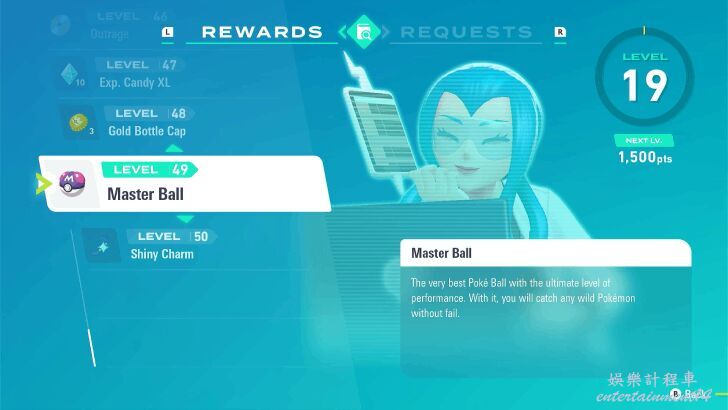 馬貝爾研究等級達到49級:通過完成各種研究任務提升與馬貝爾的研究等級。當等級達到49級時,作為獎勵就能獲得一個大師球。