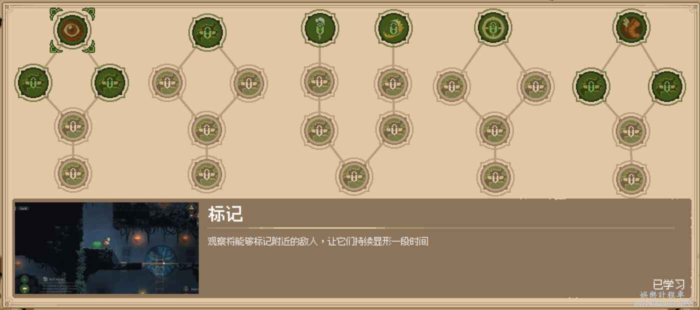 | 全視之眼 | 進階觀察 | 【正式版解鎖】你始終可以看到敵人的視覺範圍;始終可以看到附近的隱藏門或隱藏道具 |