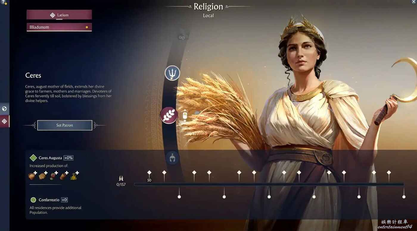 根據每個島嶼的專業化選擇神祇。農業島嶼受益於刻瑞斯,而軍事據點則在瑪爾斯的影響下蓬勃發展。你可以將效果局部應用於單個島嶼,或全域應用於整個帝國。