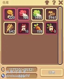 倉庫位於農場最中間的位置,所有作物都可以在裡面查看。