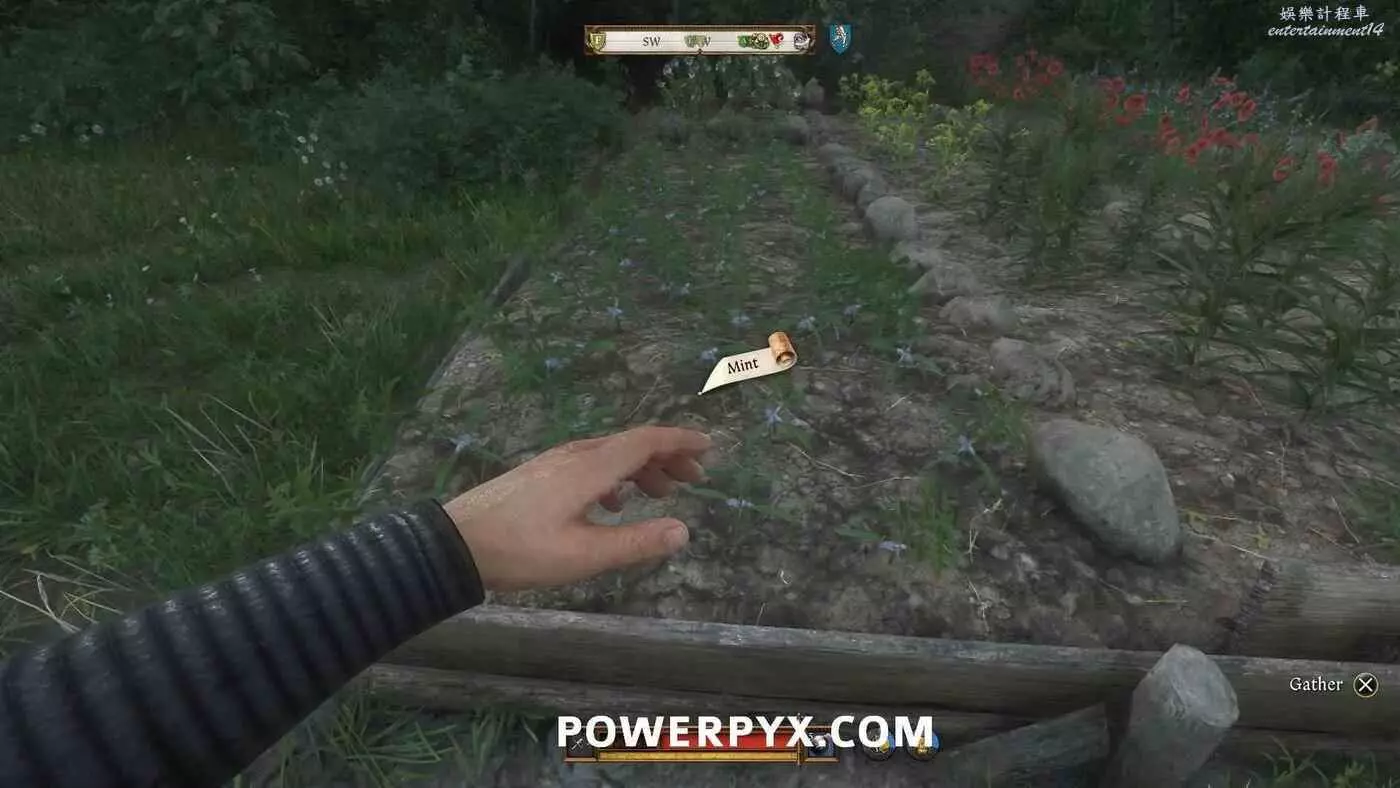 薄荷需要4份,可以在修道院區域東南邊的林地花園中找到。穿過醫務室入口東邊的門即可到達。薄荷是一種小型綠色葉子,生長在苗圃的南側邊緣。