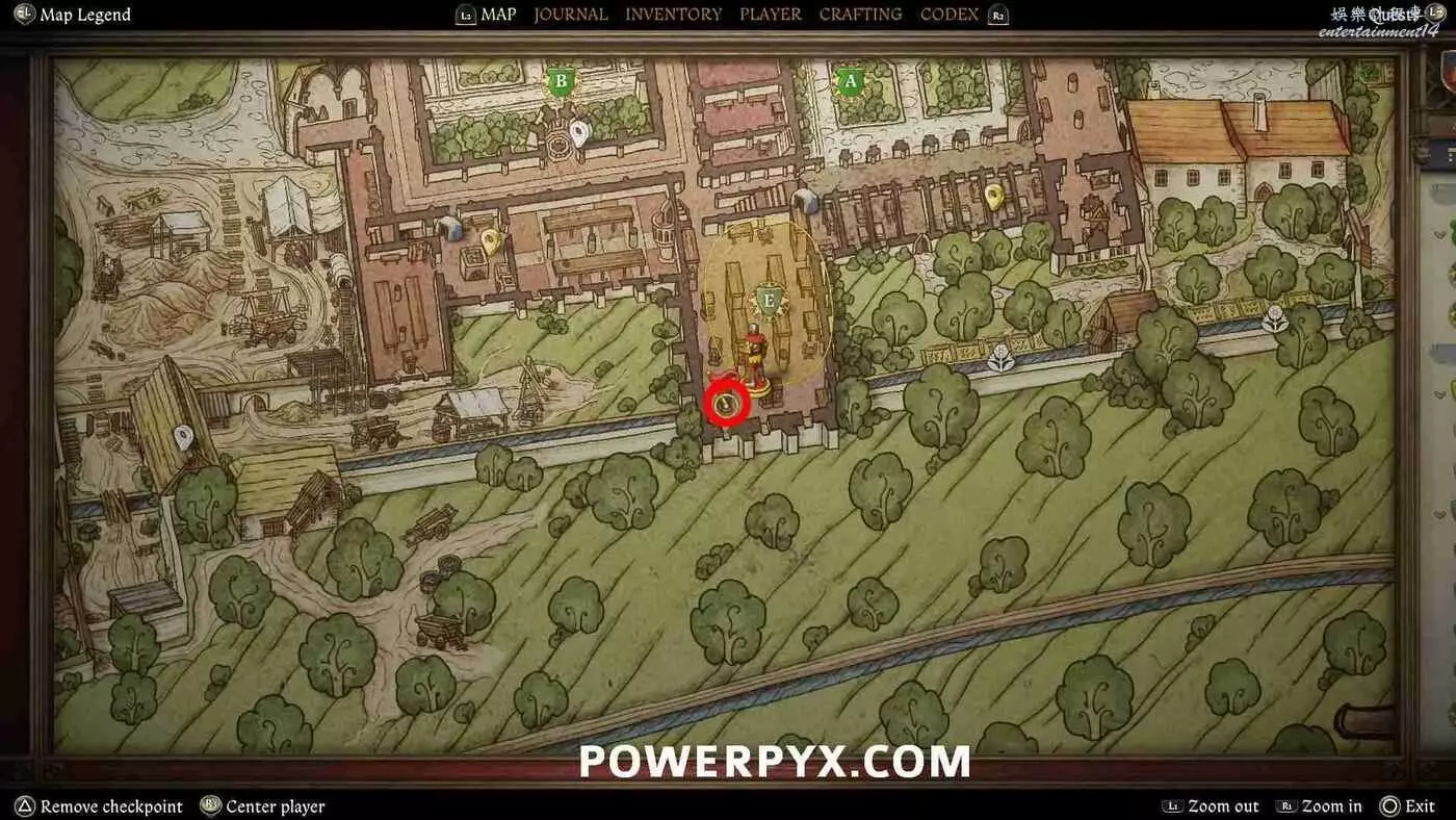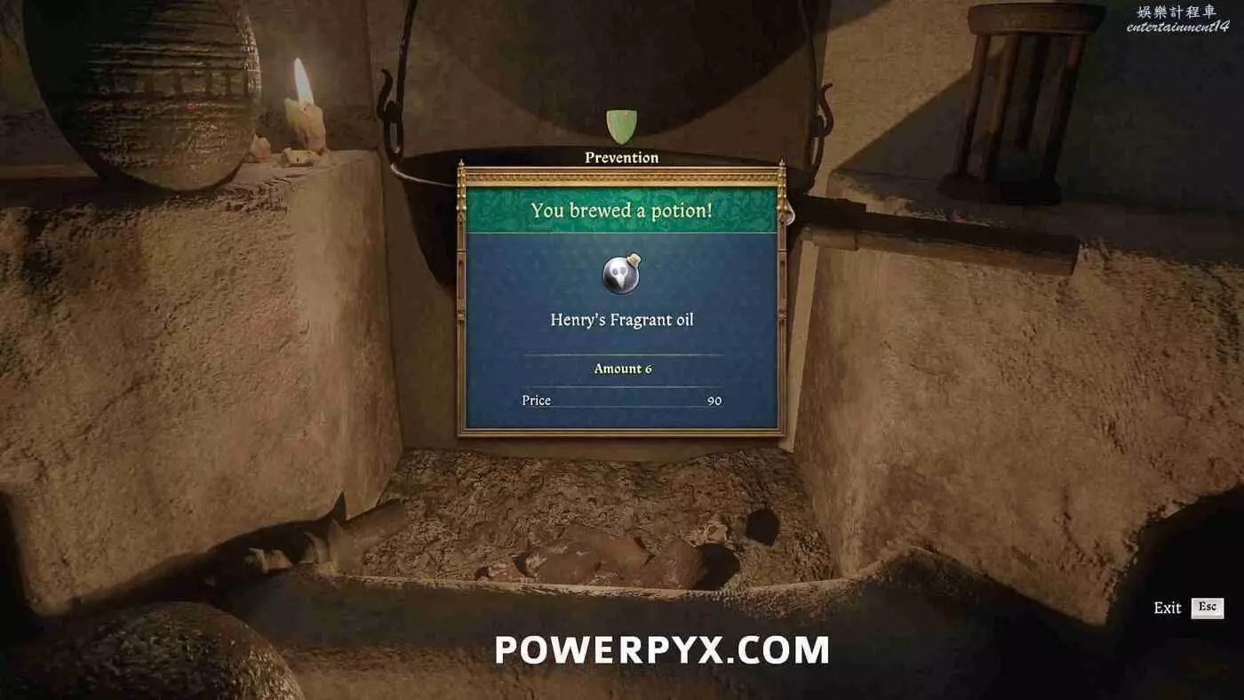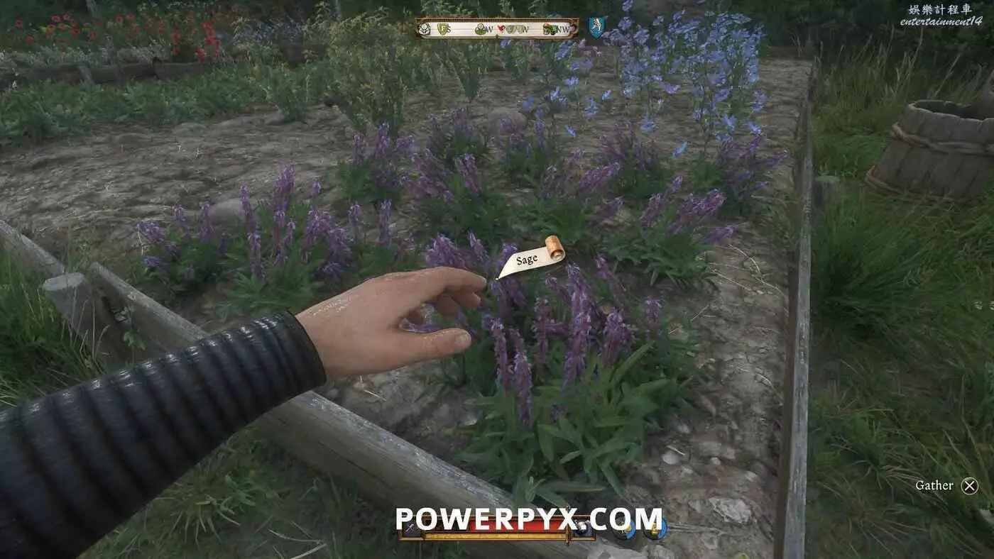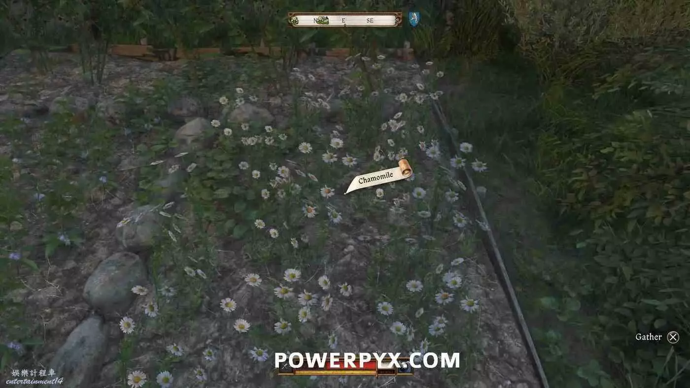注意還需要3份甘菊+1份纈草來製作芳香精油。所以順便在花園的時候把這些也采了,這兩樣材料在薄荷/鼠尾草所在苗圃東邊。一開始不會顯示提示,只有在拿到配方並與煉金台互動時才會顯示需要這些材料。薄荷實際上根本不會用在精油配方裡,它只是在任務最後用來裝飾面具的。