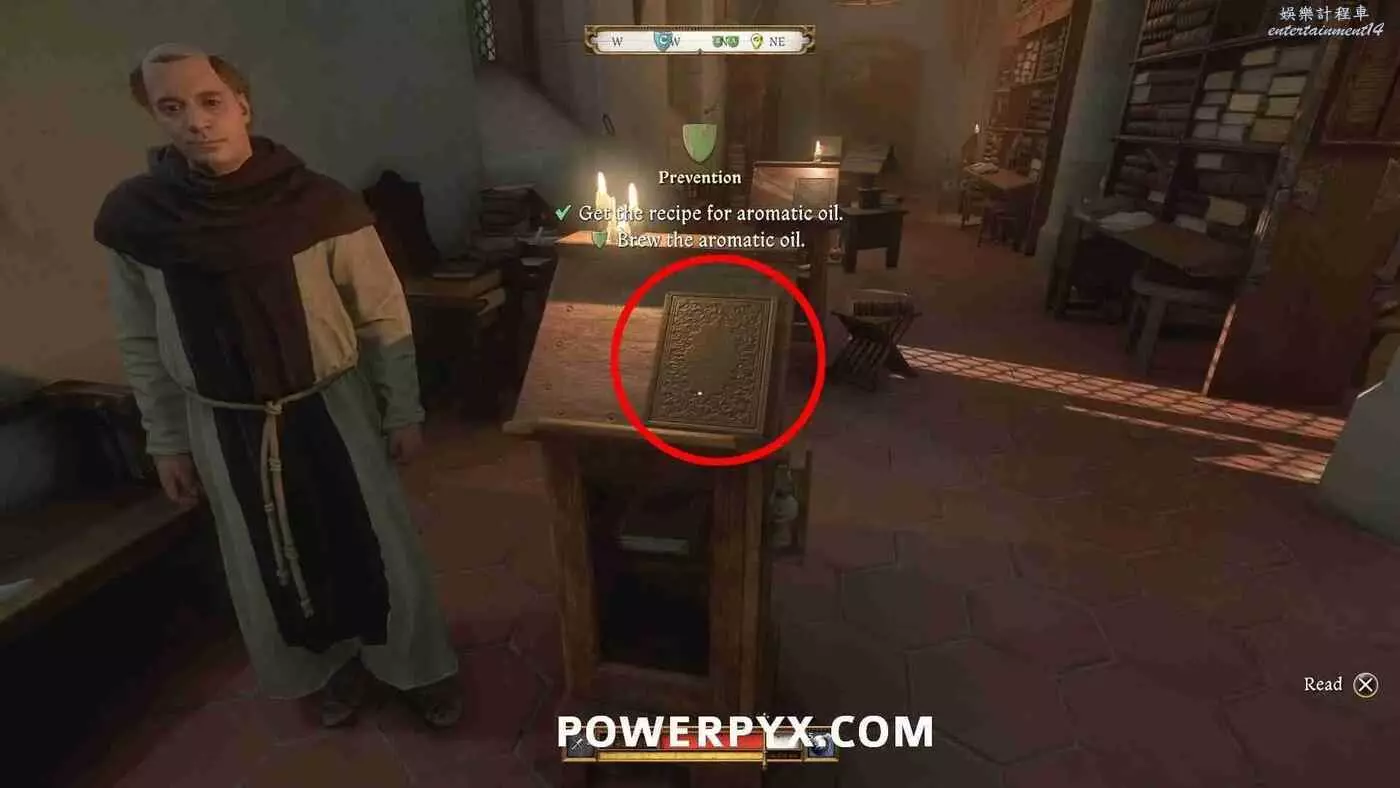 芳香精油的配方在圖書館裡,在圖書館西南角台子上有本書,翻閱這本書的所有書頁即可獲得配方。