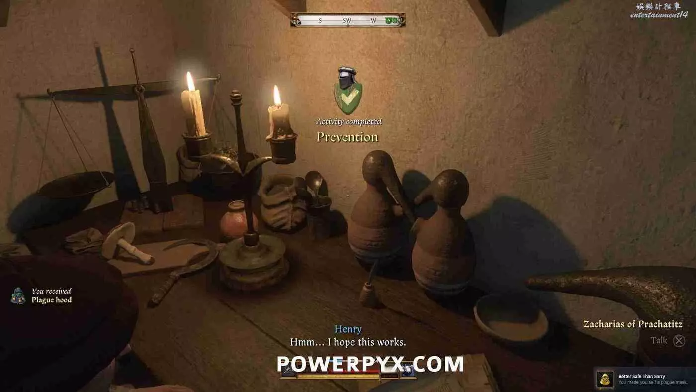 正確提交所有材料後會觸發黑屏製作過程,然後獲得【防疫面罩】,同時解鎖獎盃/成就【有備無患(你給自己做了一個防疫面罩)】。