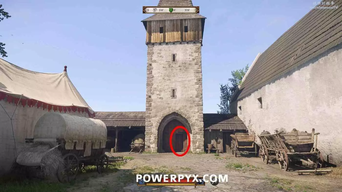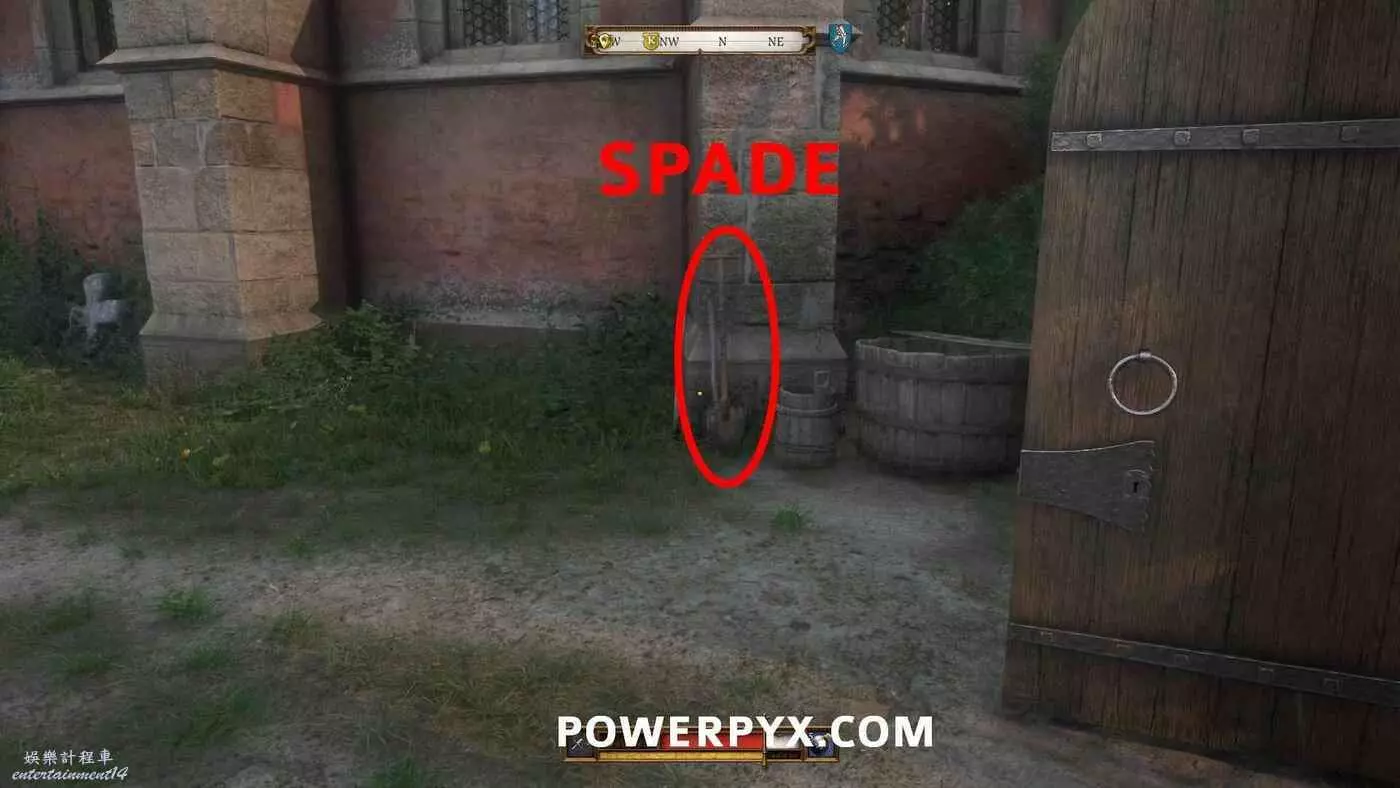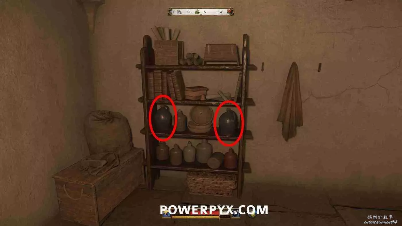 地圖上會以洞穴標記顯示【通往地窖的樓梯】。地窖有多個入口,通過南門離開教堂返回中央庭院,然後走左邊的下一扇門,在樓梯下的走廊盡頭進入地窖的門。裡面非常暗,建議提前裝備火把(按十字鍵下)。